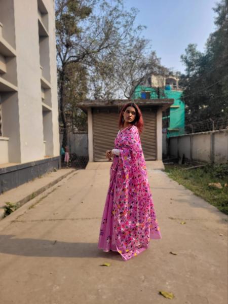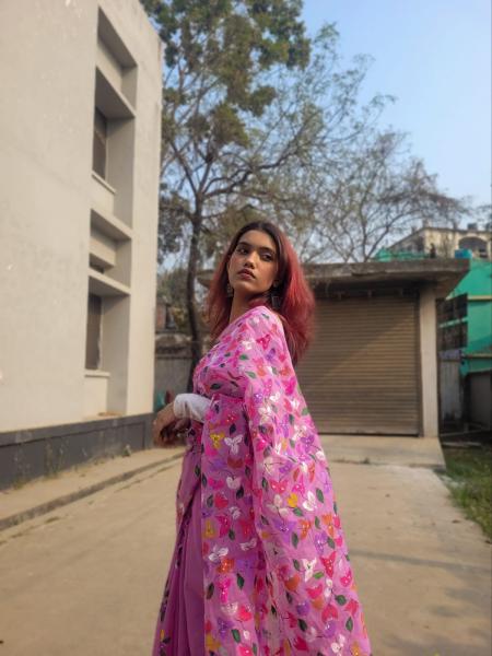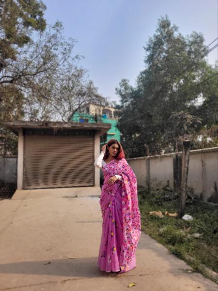 ঐতিহ্য আর আধুনিকতার মেলবন্ধনে নিজস্ব তাঁতের হাফ সিল্ক শাড়ি