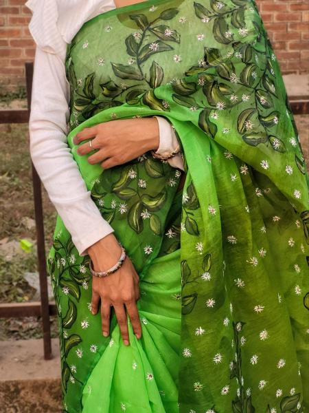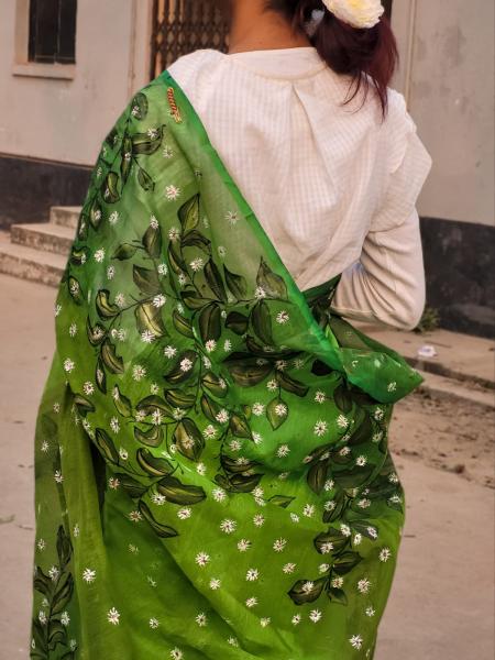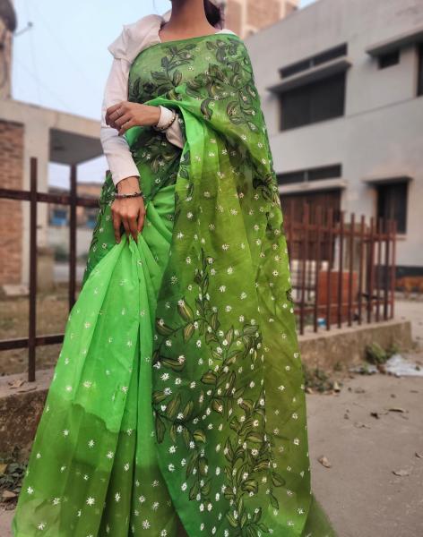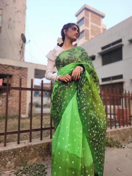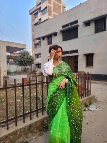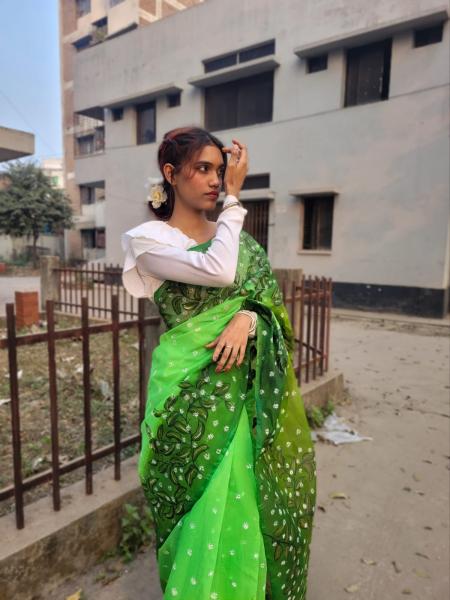 ঐতিহ্য আর আধুনিকতার মেলবন্ধনে নিজস্ব তাঁতের হাফ সিল্ক শাড়ি
