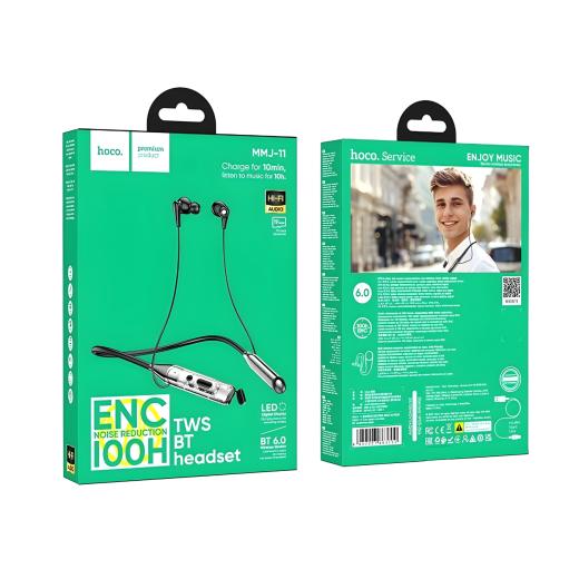 Enjoy powerful sound and crystal-clear calls with the Hoco MMJ11 ENC Bluetooth Neckband Earphone. Featuring Environmental Noise Cancellation (ENC), 100 hours of music playback, and Hi-Fi audio quality, this lightweight neckband is designed for comfort, durability, and everyday use. A 10-minute quick charge gives 10 hours of playtime, perfect for on-the-go music lovers.